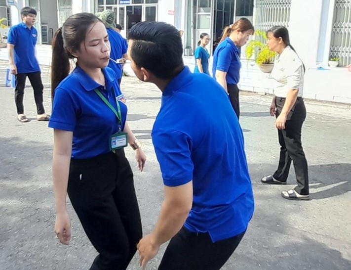 Đồng chí Nguyễn Thái Dương, Bí thư Đoàn TTYT huyện Châu Thành triển khai nội dung hoạt động và nội dung trò chơi